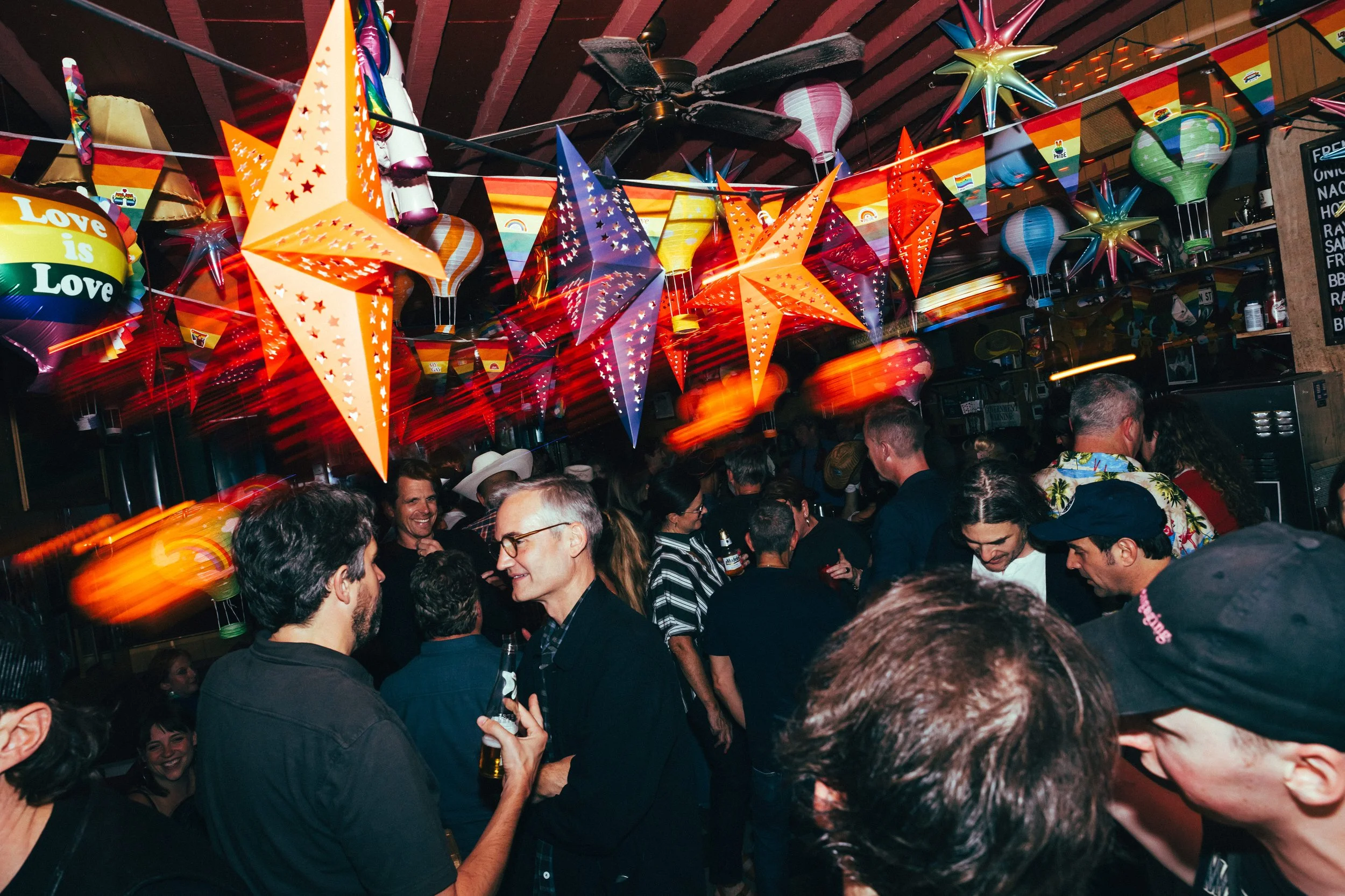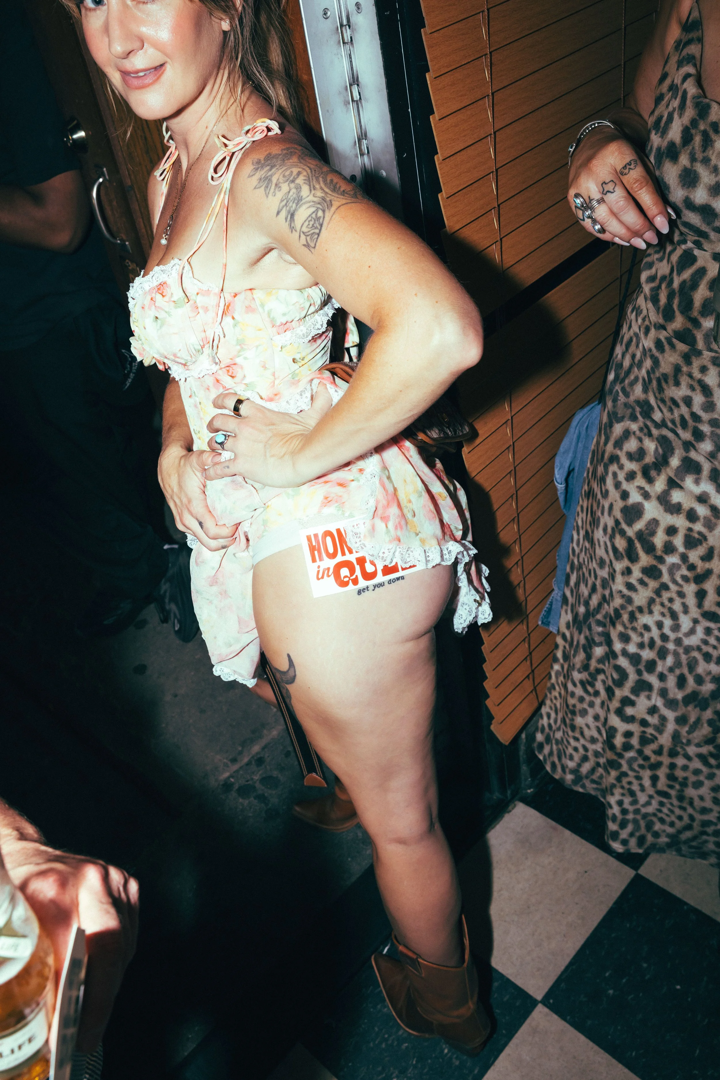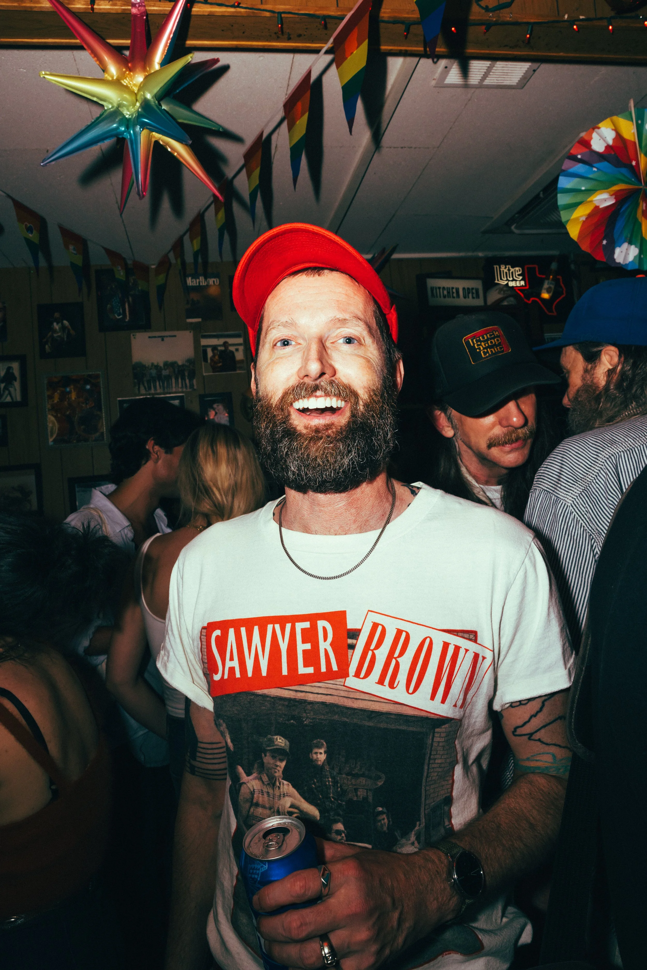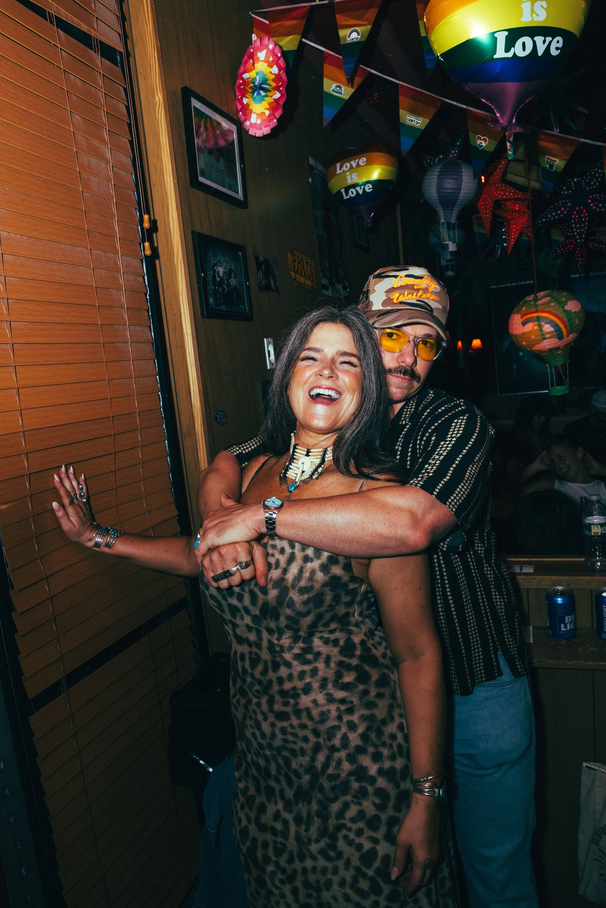 Inside Ray’s that night: bodies packed close and hot. In the heat of it, lenses caught shimmer off sequins and the stoic silhouette of a man in an iconic $400 Stetson and a bushy handlebar mustache. Next to him, a crew in flashing LED hats who didn’t know George Strait from George Michael slurred and sang the wrong words to a classic chorus floating through the air before Price’s set — but they didn’t care. That’s the thing: everyone is welcome here as long as they’re up for an exhilarating night out with an open mind. Photographer and Ray’s Bar face Weston Kloefkorn buzzed around capturing memories in flash on camera as Price took a turn behind the bar passing out shots with smiles to all in arm’s reach. Kloefkorn rode the waves of such a high-vibration atmosphere perfectly, noting with a grin that this crowd was drinking up the energy Price was doling out just as much as the drinks in each small glass she handed over.