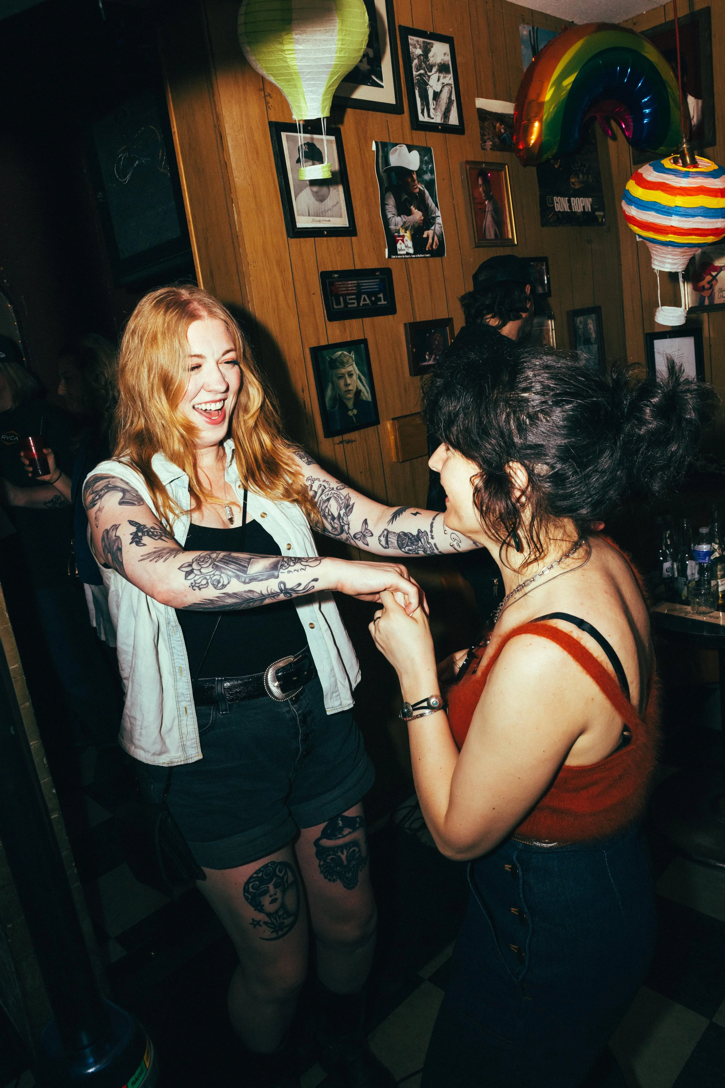 What started as a fun idea — play country records, let people dance — has steadily grown over years into a full-on movement complete with huge fan group chats chattering away about upcoming events as venues such as Queens’ Gottscheer Hall, Manhattan’s Ray’s Bar, and Brooklyn’s Skinny Dennis. Their parties are sprawling, sweaty affairs, hosted in these tucked-away bars that shake under the weight of both rising Nashville voices trucked north for a weekend mixed with vintage vinyl tunes that you’d almost swear carry a wafted scent of a West Texas gas station along with its notes splitting the air. The duo even expanded to a party yacht this summer that circled the Statue of Liberty along the Manhattan skyline. Cowboys on a boat may be an unexpected way to spend a city summer Thursday, but tickets sold out rapidly and the bands shook the floorboards as line dancers swirled in the cruise boat’s carpeted cabin. As for the typical honky-tonk crowd? They’re as far-flung as any rodeo’s greenest rider.